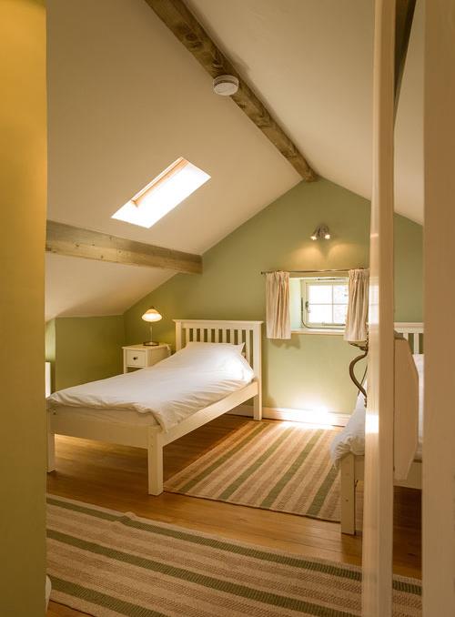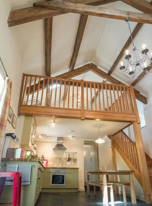 Ty Coed has two bedrooms, one downstairs double which leads off the lounge and one twin on the mezzanine first floor; this room has exposed beams and a sloping roof. The mezzanine area also houses a sofa bed for use when the property needs to accommodate five and it is a great place to relax and read.