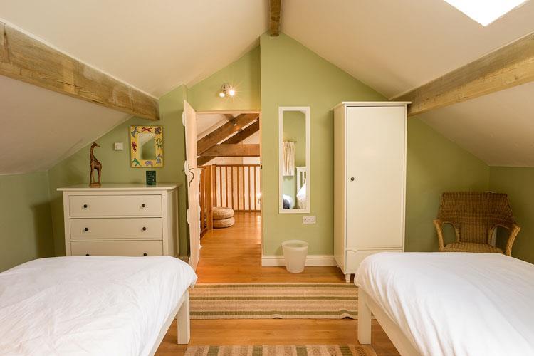 Ty Coed has two bedrooms, one downstairs double which leads off the lounge and one twin on the mezzanine first floor; this room has exposed beams and a sloping roof. The mezzanine area also houses a sofa bed for use when the property needs to accommodate five and it is a great place to relax and read.